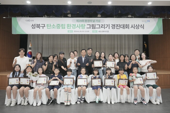 [시민일보 = 여영준 기자] 서울 성북구(구청장 이승로)는 최근 구청 성북아트홀에서 ‘2024년 성북구 탄소중립 환경사랑 그림그리기 경진대회’ 시상식을 개최했다고 밝혔다.