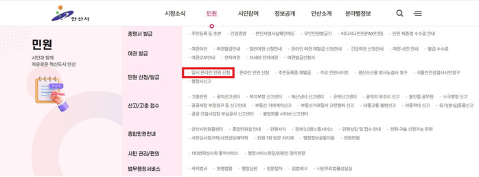 [안산=송윤근 기자] 경기 안산시가 13일부터 ‘국민신문고’ 시스템 장애에 대응해 안산시청 홈페이지에 ‘임시 온라인 민원 신청’ 창구를 설치하고 운영을 시작했다고 14일 밝혔다.