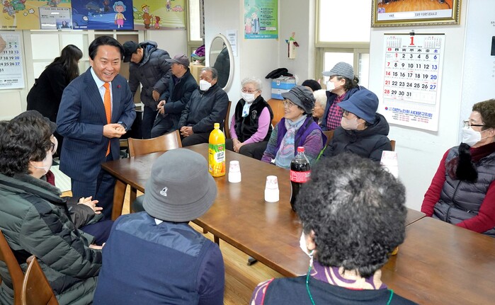 | ▲ 서대문구가 구립 노인복지관과 연계해 경로당 어르신 여가프로그램 지원을 확대한다. 사진은 이성헌 서대문구청장이 관내 한 경로당을 방문해 이용자들과 대화하고 있는 모습. (사진=서대문구청 제공) |