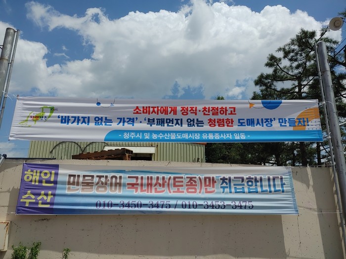 이번 현수막은 청주시 도매시장 유통종사자들이 도매시장 청렴문화(원산지 표시, 바가지요금 안 받기 등)를 준수해 시장 유통 질서를 확립해 전국에서 제일 청렴한 농수산물도매시장으로 거듭 발전하기 위해서이다.