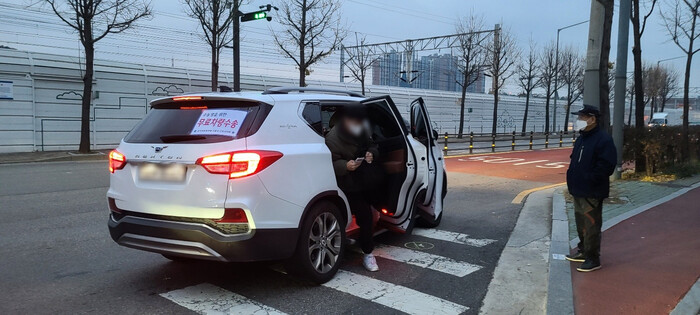 | ▲ 작년 수능일에 한 수험생이 수험생 비상 수송차량을 이용해 도착하고 있다. (사진=구로구청 제공) |