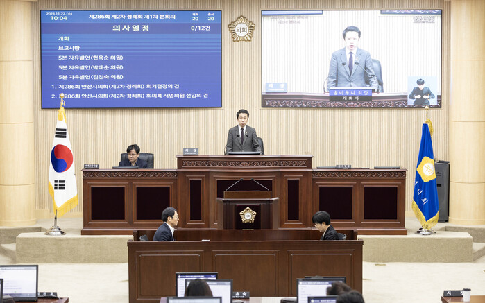 시의회는 이날 본회의장에서 의원들과 안산시 관계자들이 참석한 가운데 정례회 1차 본회의를 열어 의사일정 관련 안건과 예산결산특별위원회 구성 안건 등을 의결하고 내년도 시정 운영 방향에 관한 연설을 청취했다.