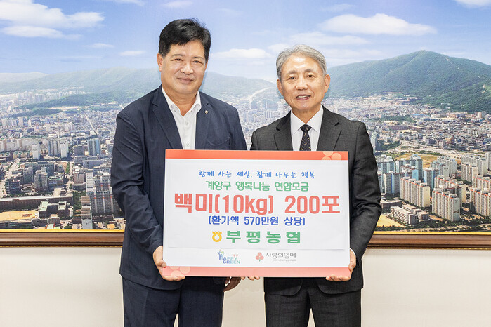 윤환 구청장은 “어려운 경제 상황 속에서도 따뜻한 마음을 모아주신 부평농협에 깊이 감사드린다.”라며, “꼭 필요한 가정에 신속하고 공정하게 전달될 수 있도록 최선을 다하겠다.”라고 말했다.
