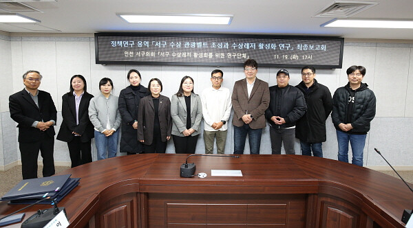 [인천=김형만 기자] 인천 서구의회 ‘서구 수상레저 활성화를 위한 연구단체’는 11월 19일, 서구의회 간담회장에서 ‘서구 수상레저 관광벨트 조성과 수상레저 활성화 정책연구’에 대한 최종보고회를 개최했다.