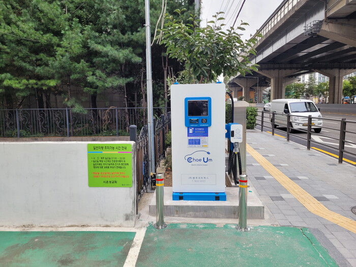 | ▲ 시온성교회(종암로30길 50) 실외 주차장에 설치된 전기차 급속충전기. (사진=성북구청 제공) |