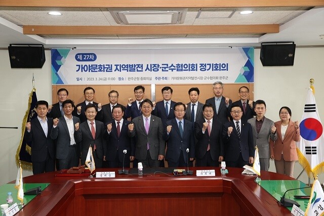 [함안=최성일 기자] 조근제 함안 군수가 지난 24일 완주 군청 중회의실 에서 개최된 ‘가야 문화권 지역 발전 시장 군수 협의회 제27차 정기회의’에서 가야문화권협의회 제9기 의장으로 선출됐다.