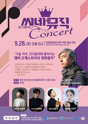 이번 음악회는 OBS 경인 TV 전기현의 ‘씨네뮤직 콘서트’공개방송으로 영화음악을 챔버 오케스트라의 연주와 함께 오후 5시부터 2시간 동안 진행될 예정이다.
