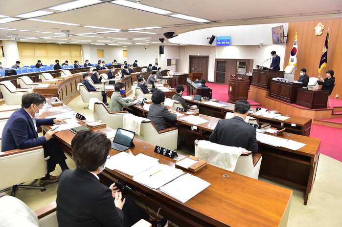 안건 처리에 앞서 정택진 의원은 5분 자유발언을 통해 최근 코로나19 확진자가 급증하고 있는 상황에서 동별로 장수문화대학 수료식을 대면 행사로 개최한 집행부에 대해 문제를 제기했다.