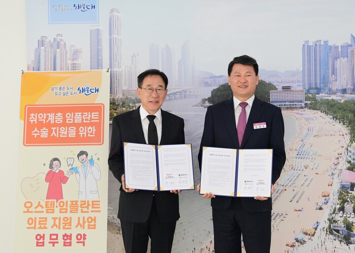[시민일보 = 여영준 기자] 오스템임플란트와 부산 해운대구가 최근 취약계층 임플란트 수술비 지원을 위한 업무협약을 체결했다.