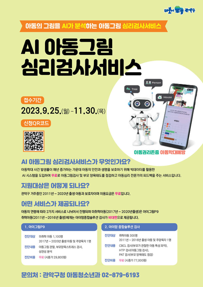 [시민일보 = 여영준 기자] 서울 관악구(구청장 박준희)는 효과적인 아동학대 예방책 마련을 위해 빅데이터를 활용한 인공지능(AI) 시스템을 도입, 'AI 아동그림 심리검사서비스' 운영을 시작했다고 25일 밝혔다.