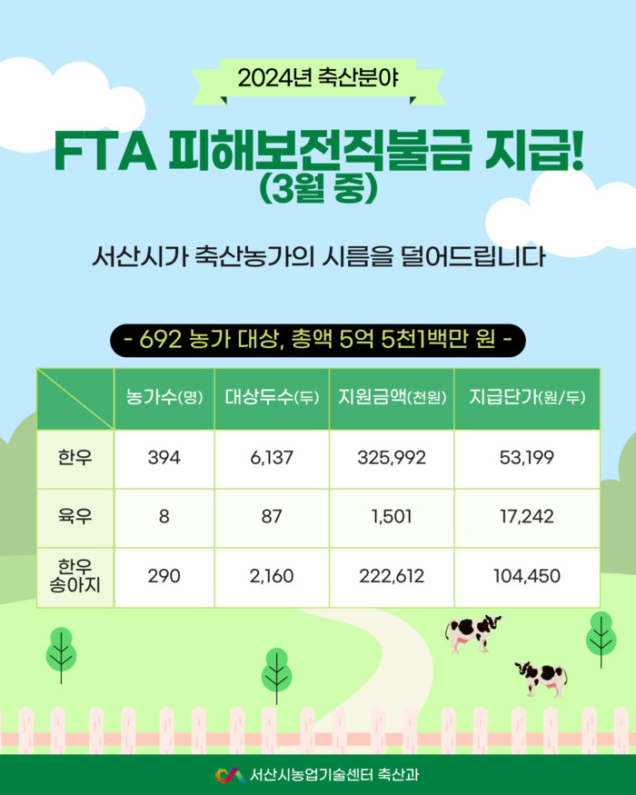 직불금 지급 대상은 2015년 1월1일 이전부터 한우와 한우 송아지, 육우를 사육하고 있는 농가며, 시는 지난 2024년 7월부터 9월까지 대상 농가로부터 해당 직불금 신청을 받았다.