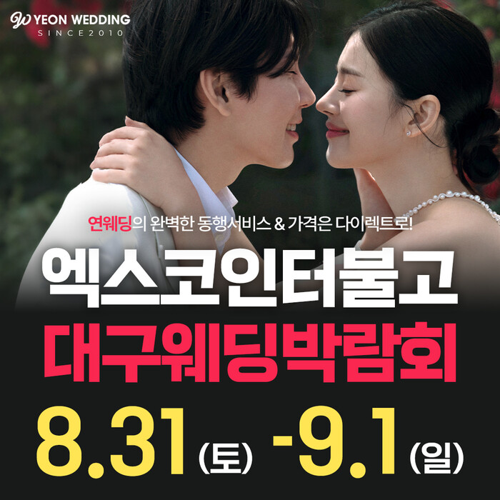 [시민일보 = 이창훈 기자] 오는 31일부터 9월1일까지 이틀 동안 엑스코 인터불고 호텔에서 대구연웨딩박람회가 결혼준비 품목들을 담아 웨딩박람회를 개최된다.
