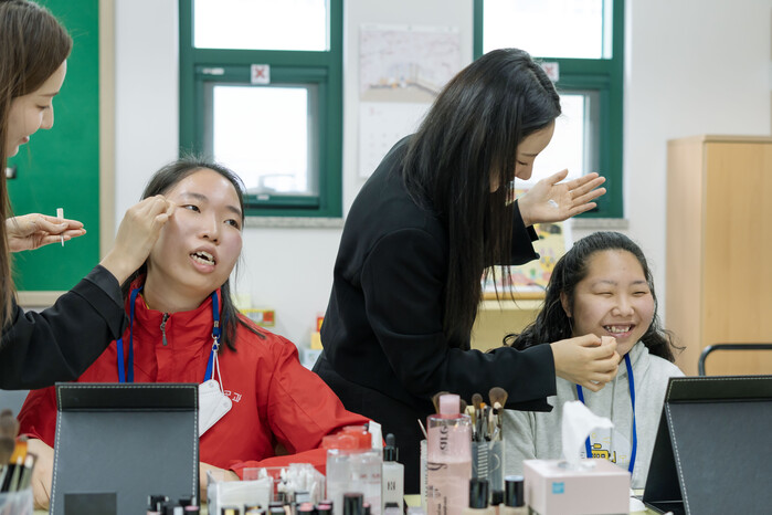 이번 ‘청년 마음 테라피 in 서울애화학교’는 청각 장애, 지적 장애 청년의 마음 돌봄을 지원하고 심리적 안정과 감각 능력 향상을 중점으로 진행했다. 진로를 준비하고 있는 서울애화학교 전공과 학생 14명은 차, 향, 메이크업 3가지 테라피 과정 중에서 각자 선호에 따라 자유롭게 참여했다.