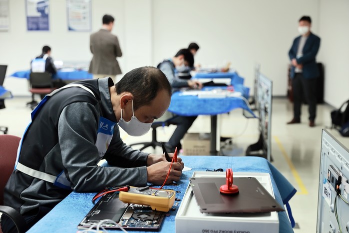 '수리기술 경진'은 실제 서비스 환경과 동일한 상황에서 제품 고장을 신속·정확하게 수리하는 전문성을 갖추고 있는지 평가하는 종목이다.