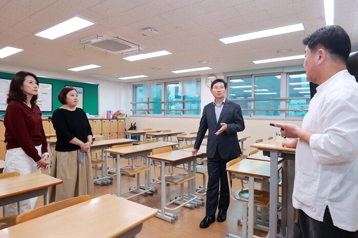 [용인=오왕석 기자] 이상일 용인특례시장은 8일 오후 기흥구 중동에 있는 초당중학교를 방문해 학부모·학교장과 함께 교육환경을 점검하고 의견을 나눴다.