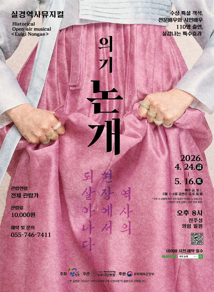 진주시를 대표하는 공연 콘텐츠인 실경역사 뮤지컬 「의기 논개」가 오는 24일(금)부터 시작해 5월 16일(토)까지 총 10회 공연한다.