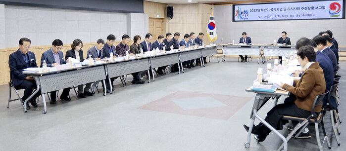 이날 보고회에서는 김윤철 군수를 비롯한 부군수, 관·국·직속기관장, 전 부서장 등 30여 명이 참석한 가운데 민선8기 공약사업과 지시사항에 대한 추진상황을 점검하고 문제점과 개선방안에 대해 논의했다.