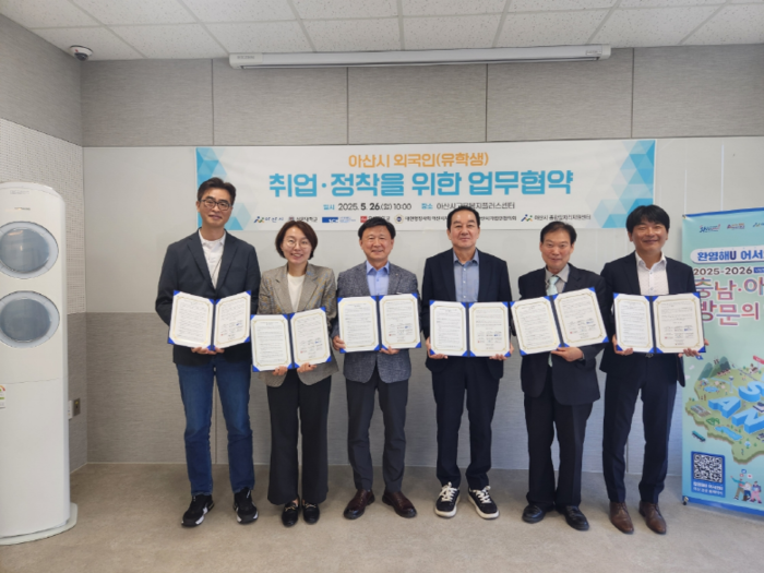 시는 지난 26일 아산고용복지플러스센터에서 ‘외국인 유학생 취업 활성화를 위한 산ㆍ학ㆍ관 협의회’를 개최하고 지역내 3개 대학(선문대ㆍ순천향대ㆍ호서대), 유관기관 3곳(아산시기업인협의회ㆍ대한행정사회아산시지회ㆍ아산시종합일자리지원센터)와 업무협약을 맺었다.