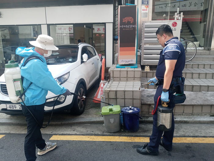 그 결과 올해 8월부터 10월까지 월 2회, 총 6회 합동방역을 계획했으며, 이번 합동방역소독에서는 대상지역을 3개 구역으로 나눠 방역반을 3개조로 편성하고 위생해충 밀집도가 높은 장소인 ▲하수구 ▲빗물받이 ▲음식물쓰레기 및 생활쓰레기 적치 장소 ▲화단 등을 대상으로 약제 분무 및 독 먹이제 살포 작업 등을 실시했다. 향후 남은 기간 동안에도 방역소독 계획을 차질없이 실시할 예정이다.
