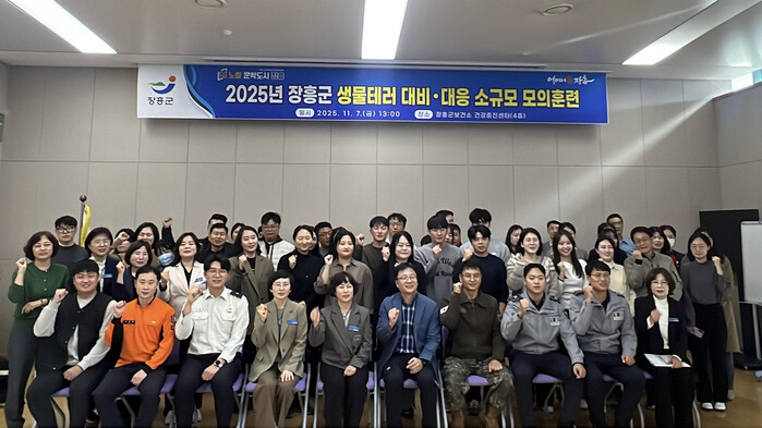 이번 훈련에는 전남도청, 장흥군 재난부서, 장흥경찰서, 장흥소방서 등 유관기관과 타 시ㆍ군 생물테러 담당자 70여명이 참여했다.
