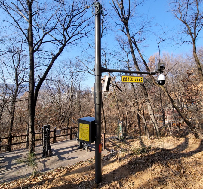 | ▲ 초안산근린공원 산책로 내 설치된 지능형 폐쇄회로 텔레비전(CCTV). (사진=도봉구청 제공) |