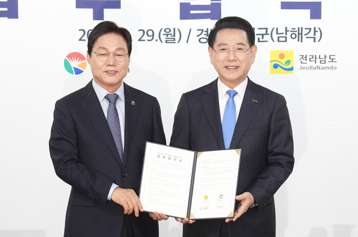 이번 협약식에는 김영록 전남도지사와 박완수 경남도지사가 직접 협약서에 서명하고, 전남도와 경남도가 상호 신뢰와 공동의 목표 아래 협력할 것을 약속했다.