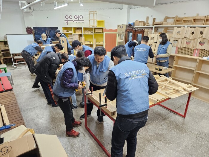 이번 사업에는 가구제작과 수리를 하고 있는 용답동 소재 ‘우드어스 사회적협동조합’과 ‘포스코 목공봉사단’이 동참해 각 가정의 공간환경과 학생들의 욕구에 맞춰 책상, 의자, 책꽂이 등의 맞춤형 가구를 설계·제작 해 공부방을 조성했다.
