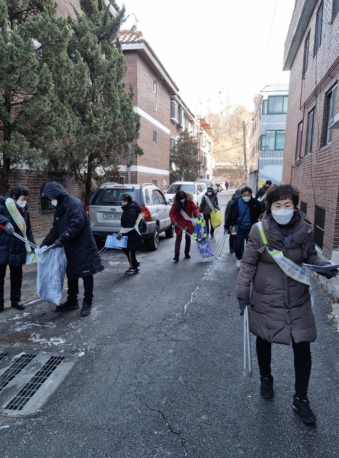 경기 남양주시 퇴계원읍은 최근 새해를 맞아 주부에코폴리스와 이장단협의회를 중심으로 플로깅 활동 및 환경보호 캠페인을 전개했다. 이날 캠페인에서는 다세대 주택 단지와 퇴계원 먹자골목을 중심으로 플로깅 활동과 함께 무단 투기 계도 등에 대한 홍보 활동을 펼쳤다. 사진은 이날 봉사자들이 골목길에서 쓰레기를 수거하고 있는 모습. (사진제공=남양주시청)