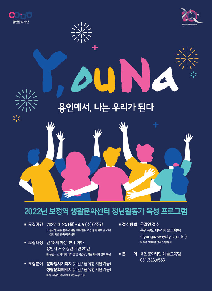 용인에 거주하거나 재직 중인 만 18세 이상 39세 이하 청년은 누구나 신청이 가능하며, 프로그램 참여 신청은 4월 6일까지 용인문화재단 홈페이지에서 신청 양식을 작성하여 이메일로 제출하면 된다.