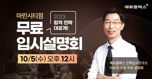 해당 설명회는 10/5(수) 오후 12시, 에듀플렉스 마린시티점 (부산시 해운대구 우동 1410 트럼프월드마린 C동 2층)에서 진행되며 에듀플렉스 홈페이지와 마린시티점 블로그를 통해 신청이 가능하다.