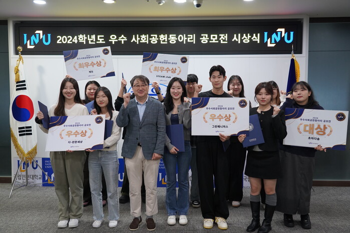 [인천=김형만 기자] 인천대학교(총장 박종태)는 재학생들이 지식 및 재능 나눔을 통해 지역사회 공헌에 이바지하고 창의적이고 혁신적인 사고로 변화와 혁신을 주도할 수 있도록 고취하고자 ‘인천대학교 우수사회공헌 동아리 공모전'을 진행하고 지난 18일 시상식을 가졌다.