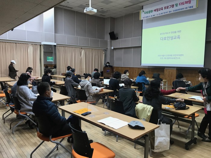 다도문화 예절교육 프로그램은 지난 2월경 모집한 다도문화 예절교육 활동가 32명이 참여한다. 에스컬리너교육연구소 소속 강순금 원장이 강사로 참여하며 3월 동안 주 2회씩 다도문화 체험과 차 생활 예절, 절 하는 법 등 예절을 익히고, 우리의 효 정신과 예절교육인 다도를 융합한 인성교육지도법을 학습받는다.