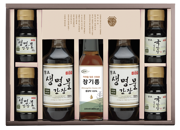 제품 구성은 ▲양조 생명물간장’ 500ml 2개 ▲양조 생명물간장 120ml 2개 ▲양조 깔끔한 국간장 120ml 2개 ▲통참깨 100% 참기름 220ml 1개로 구성됐으며, 오는 2023년 1월 2일부터 전국 신앙촌상회와 백화점, 마트, 온라인 쇼핑몰 등을 통해 구매가 가능하다.