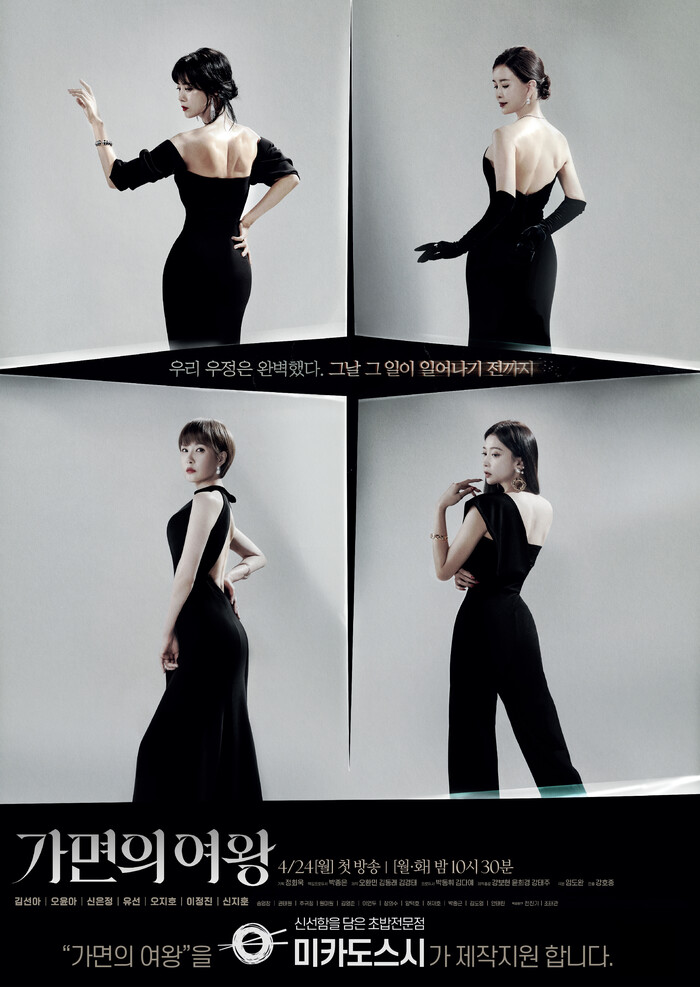<가면의 여왕>은 화려하게 성공한 세 여자 앞에 10년 전 그녀들의 거짓말로 살인자가 된 절친이 나타나면서 가면에 감춰져 있던 진실이 드러나고, 한 남자로 인해 인생의 소용돌이를 맞게 된 친구들의 욕망이 충돌하는 미스터리 멜로 복수극으로 시청자들의 이목을 사로잡을 전망이다.