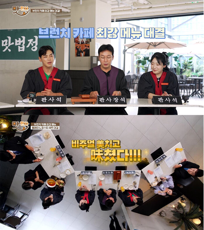 12화에 방영된 ‘맛판사’는 최강 브런치편으로 샘플러 VS 올엑스트라 혹은 쉬림프 알리오 올리오 VS 스파이시 쉬림프 파스타 등 메뉴 선택을 앞두고 결정을 내리지 못하는 사람들을 위해 한치의 양보 없는 맛법정 다툼이 펄쳐진다.
