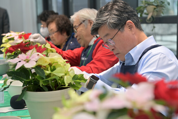 이달에는 중림종합사회복지관, 유락종합사회복지관을 찾아가 크리스마스 분위기를 물씬 느낄 수 있는 포인세티아 화분 만들기를 진행한다.