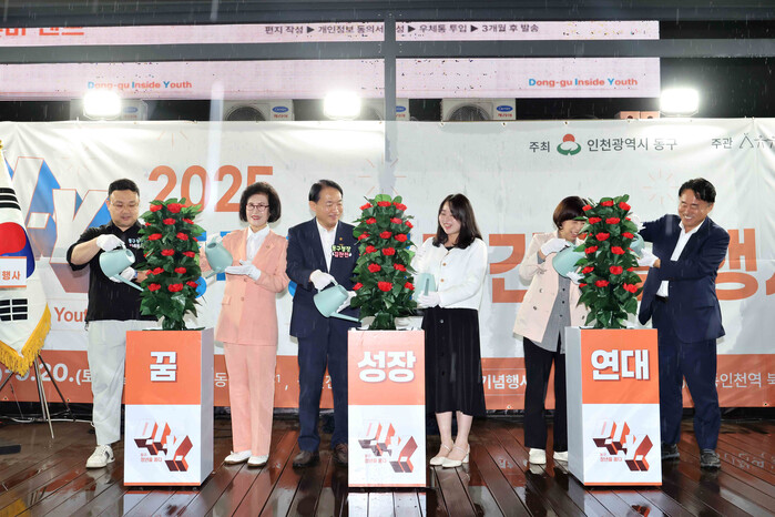 특히, 동인천역 북광장에서 진행된 청년주간 기념식에서는 김찬진 동구청장을 비롯한 주요 내빈들과 청년들이 함께 ‘꿈’, ‘성장’, ‘연대’의 나무에 물을 주어 꽃이 만개하는 퍼포먼스를 통해 활짝 피어날 청년들에게 응원의 메시지를 전했다.