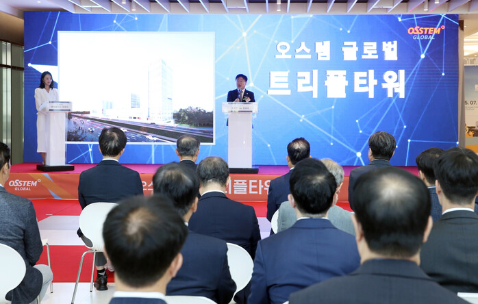 오스템글로벌 트리플타워 건물에는 임플란트 유니트체어, 엑스레이 디텍터(X-ray detector), 파노라마, 컴퓨터 단층촬영(CT) 등 치과 영상장비 제조ㆍ연구시설과 본사 일부 사업본부, 오스템글로벌 임직원들이 입주를 준비하고 있다.