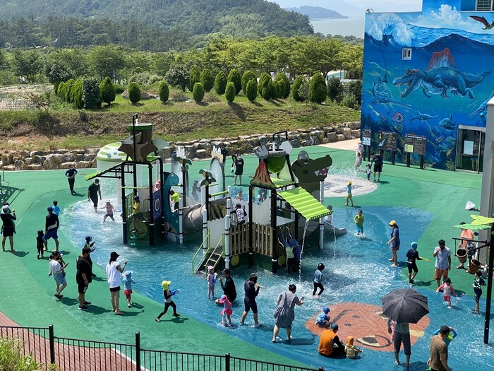 | ▲ 해남공룡박물관 물놀이 체험장에서 물놀이를 즐기고 있는 가족단위 관광객들 / 자료사진 = 해남군 제공 |