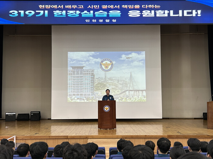 [인천=문찬식 기자] 인천경찰청이 23일 인천경찰청 대강당에서 10주간 현장실습을 앞둔 319기 신임 경찰관을 대상으로 특강을 실시했다.
