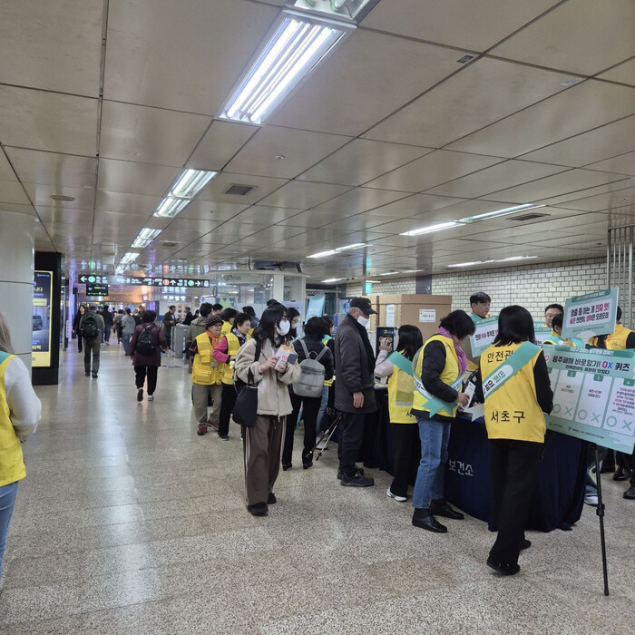 | ▲ 2025년 만취예방 연합캠페인1부(교대역 홍보부스 운영). (사진=서초구청 제공) |