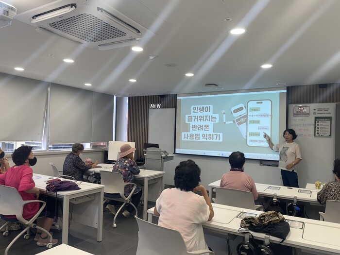 현대인의 필수품이 돼버린 스마트폰은 어르신뿐만 아니라 한글에 취약한 성인에게도 다루기 어려운 기기 중 하나다. 이에 구는 9월부터 강동마을미디어지원센터에서 디지털 생활 문해교육 ‘인생이 즐거워지는 반려폰 사용법 익히기’를 운영하고 있다.