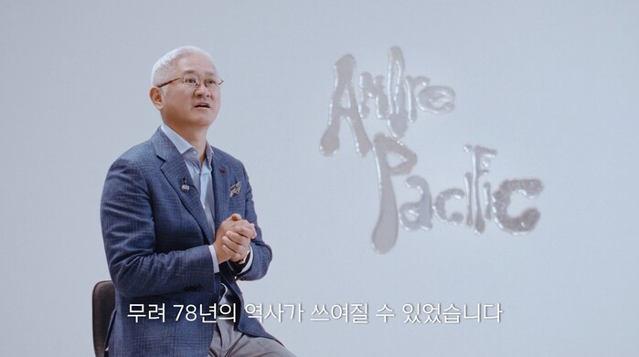 | ▲ 창립 78주년 기념식 영상에서 서경배 회장이 기념사를 하고 있다. (사진=아모레퍼시픽 제공) |