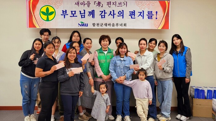 또한 지난 7일 합천군가족센터를 방문 한글교실에 참여한 다문화여성 11명과 멀리 떠나온 고향의 부모님과 한국 시부모님께 ‘효’와 사랑이 담긴 편지 쓰는 모습을 참관하고 함께 담소를 나누는 등 뜻 깊은 시간을 가졌다. 감동을 주는 우수 편지는 취합해 최우수, 우수, 장려, 감동상 으로 나눠 6월에 시상할 계획이다.