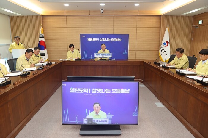 [해남=정찬남 기자] 전남 해남군(군수 명현관)은 제6호 태풍 카눈에 대비해 8일 군수 주재로 전 부서장이 모인 가운데 긴급 점검회의를 개최했다.