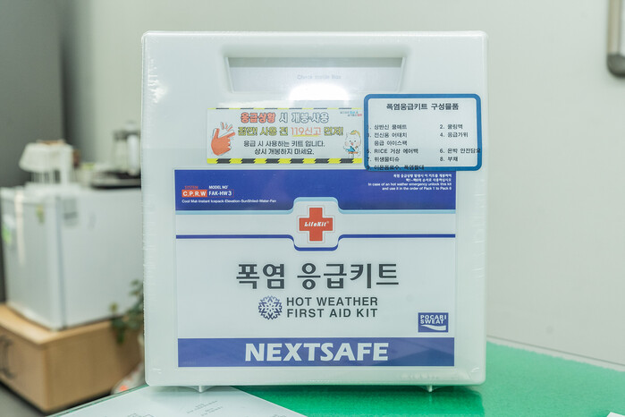 또한 구는 온열질환 발생 시 신속한 응급조치가 이뤄질 수 있도록 ‘폭염응급키트’를 현장 31곳에 비치한다. 폭염응급키트는 ▲열 차단용 안전담요 ▲냉각시트 및 냉각이불 ▲상반신 쿨매트 ▲전신용 아이스팩 ▲거상 에어백 ▲이온음료와 쿨링액으로 구성돼 있다. 이와 함께 구는 작업장별 업무시작 전 온열질환 예방교육을 실시하고, 폭염특보 단계별 작업 기준을 지정하는 등 온열질환에 대비할 예정이다.