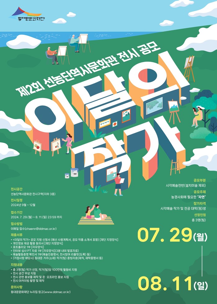 신청방법 등 세부사항은 동대문문화재단 홈페이지나 인스타그램(@ddmfac_official)에서 확인하거나 ‘동대문문화재단 공간운영팀’으로 문의하면 된다.