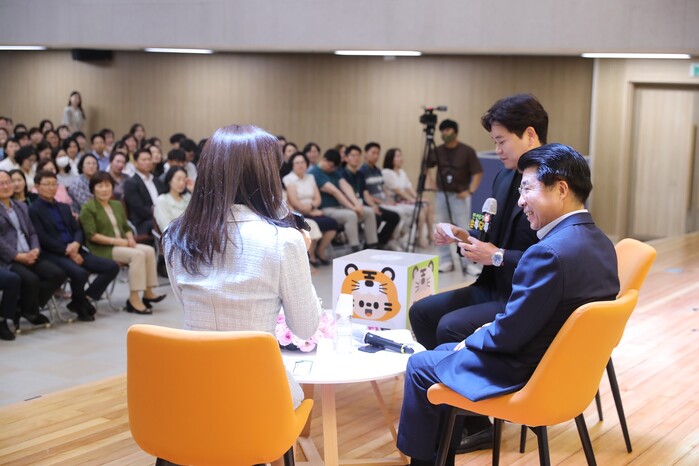 특히, 이날 직원 500여명이 참석한 가운데 서강석 구청장을 무대로 초청해 진행한 ‘쓴톡(Talk)단톡(Talk)’ 시간에는 직원들의 솔직하고 재치 있는 질문이 이어져 눈길을 끌었다.