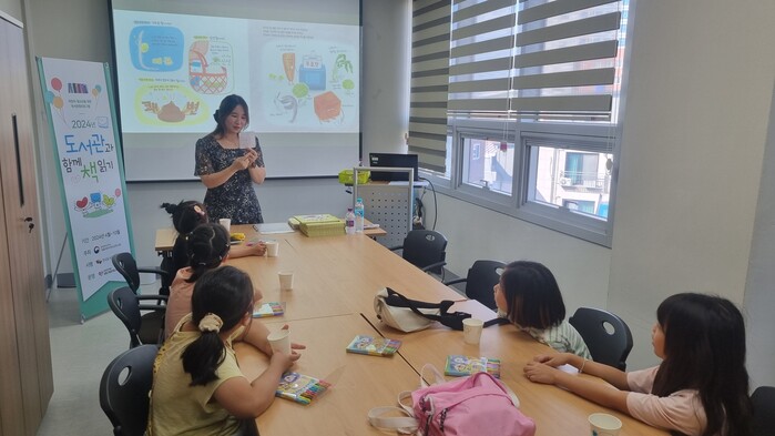 「도서관과 함께 책읽기」는 2023년부터 성동구립 청계도서관과 연계한 책읽기 프로그램으로 올해 2년 차에 접어들었다. 올해는 6월부터 8월 약 3개월간 운영하며 아동들의 올바른 독서 습관 형성과 표현력 및 소통 능력 향상의 기회를 제공하고 있다.