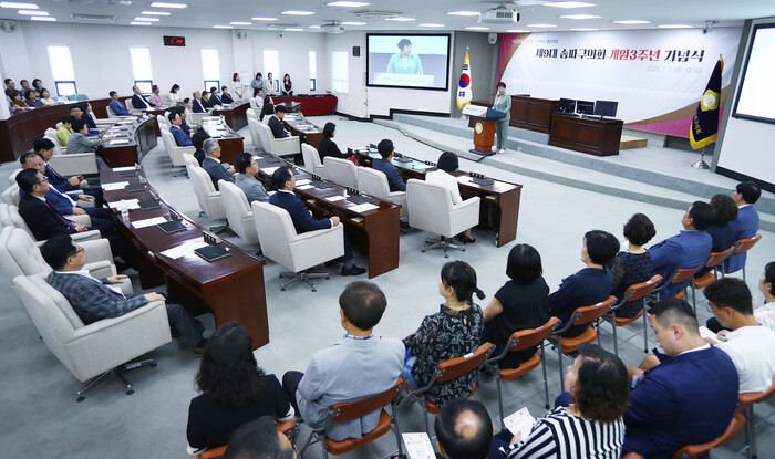 [시민일보 = 이대우 기자] 서울 송파구의회(의장 이혜숙)가 최근 구의회 본회의장에서 제9대 송파구의회 개원 3주년 기념식을 열고 지난 3년간의 의정활동을 되돌아보고 남은 임기에 대한 각오를 다지는 뜻깊은 시간을 보냈다.